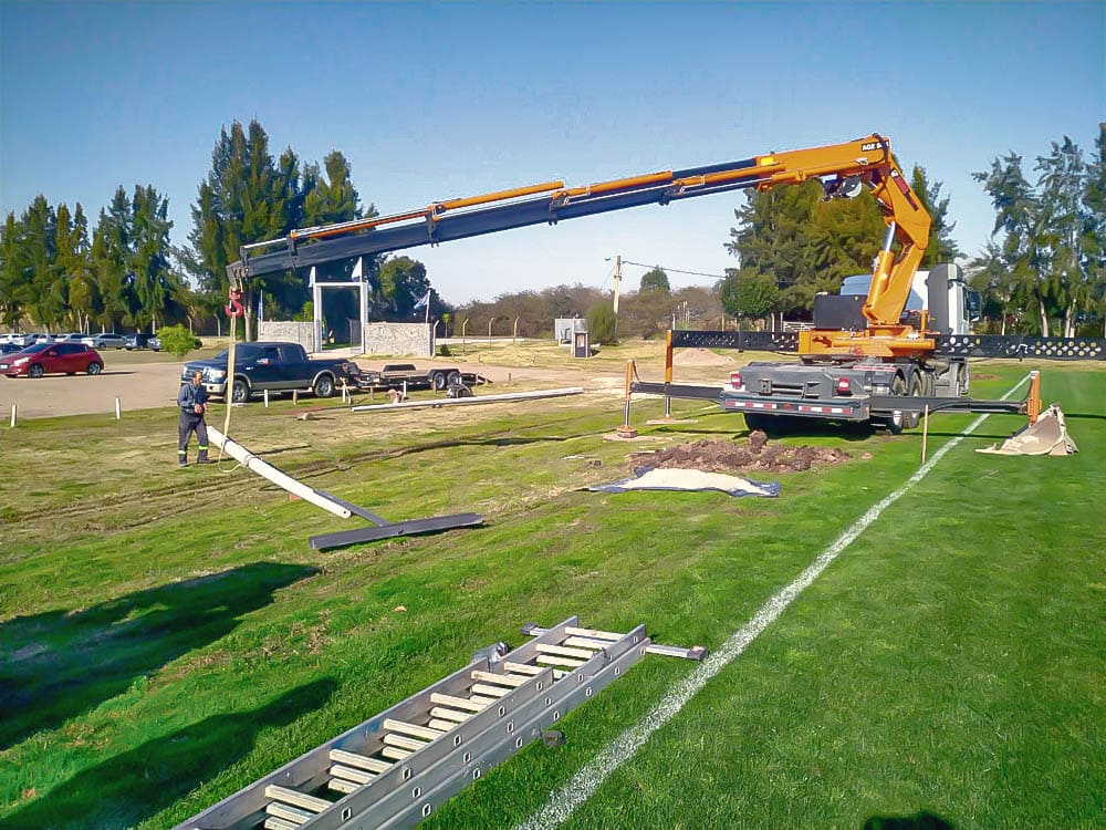 Transporte y elevación de isopaneles para montaje de galpones